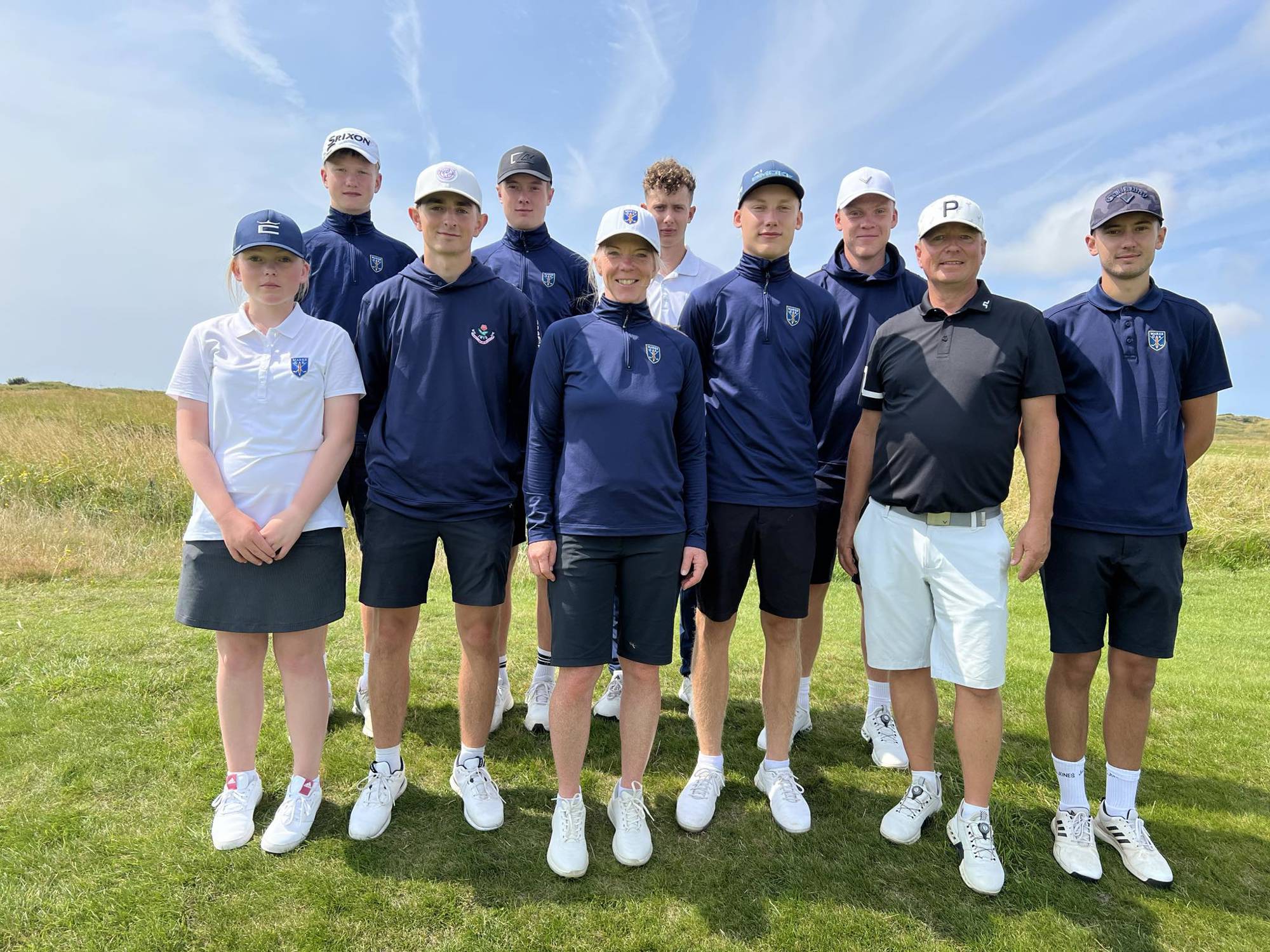 Tidigt på söndag morgon 28 juli åkte 8 av våra juniorer och två ledare till Liverpool. Flyget gick redan 06.10 från Landvetter och efter mellanlandning i Amsterdam landade vid på Manchesters flygplats 10.25 (engelsk tid). Glada och lättade kunde vi konstatera att alla golfbagar och väskor kom fram och vi begav oss direkt till golfklubben där värdfamiljer, juniorer, lunch och 9 håls golfspel väntade. Vi var nog alla lite nervösa på första tee men efter ett par hål flöt både spelet och engelskan riktigt bra. West Lancashire är en fantastiskt mysig klubb med en jättefin bana som är rankad som en av Storbritanniens 100 bästa banor. Måndagen bjöd på 4-boll bästboll tävling över 18 hål och på eftermiddagen/kvällen ett efterlängtat besök inne i Liverpool där det köptes en och annan fotbollströja.... På tisdagen åt vid typisk engelsk brunch på klubben och därefter väntade singeltävling poängbogey. 27 hål väntade på onsdagen, först en 9 håls korthålsbana på Formby Hall och därefter 18 hål på Southport Old links. På Southport blev vi väl mottagna av deras juniorledare och juniorer som bjöd på lunch och sedan en bästboll tävling. Denna bana var lite mer av en parkbana och kanske lite mer lik vår bana här hemma även om den inte var kuperad. Detta var resans varmaste dag och temperaturen gick nog nästan upp till 30 grader i skuggan! Efter fyra dagars spel var vi uppvärmda och redo för den stora matchspelsdagen! Denna dag bjöd inte bara på fantastiskt sommarväder utan även på ett Hole in one på 17.e hålet. Erik Elmelid slog bollen direkt i hål och vände sin match från att var två ner till att dela på 18 hålet! Kul dag för alla som innebar att för första gången sedan starten 2013 delades matchen med 4,5 mot 4,5. Kvällen avslutades med middag på Rock Salt, en restaurang i Crosby inte långt från banan där alla värdfamiljer, ledare och juniorer var med. En riktigt härlig kväll som bjöd på god mat, prisutdelning för veckans alla tävlingar och tal från juniorkaptenerna och ledarna. Sista dagen spelade vi en lagtävling över 9 hål innan vi begav oss till Manchester flygplats för resan hemåt. En fantastisk vecka med perfekt väder, fint golfspel, härliga ungdomar och många skratt! Det är en ynnest att få ha ett sådant här utbyte och för ungdomarna är det en fantastisk vecka! Vi som ledare är oerhört stolta över våra ungdomar och som en värdfamiljsmamma uttryckte sig - your boys and girls are a credit to Marks GK!