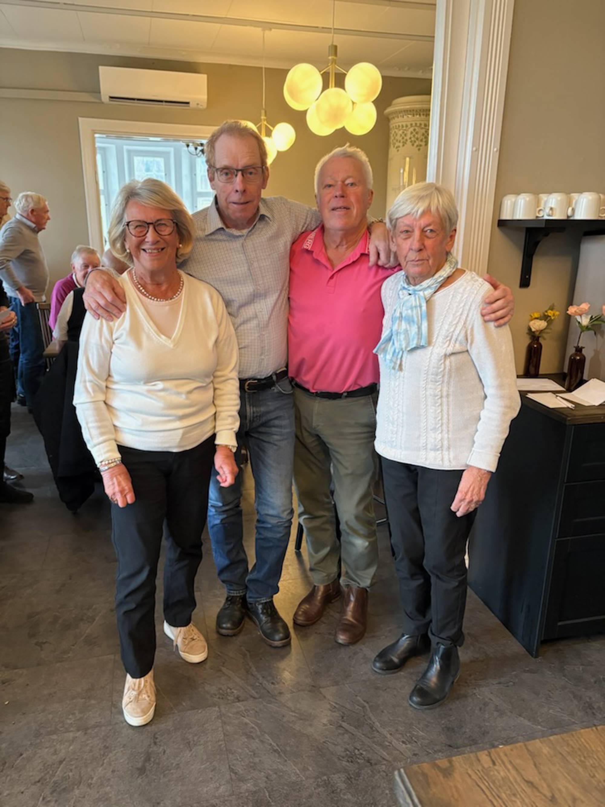 Spelarna bjöds på smörgåstårta samt kaffe med dopp i klubbhuset och prisutdelning hölls för alla tävlingar som genomförts under året. På bilden ser vi några av pristagarna från årets tävlingar, Margareta Larsson, Lars-Göran Hellberg som blev vinnare av seriespelet, Leif Folkesson och Karin Brusk.